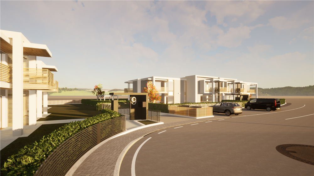 Le unità offrono due camere, due bagni, ampio soggiorno con cottura, lavanderia e garage doppio.