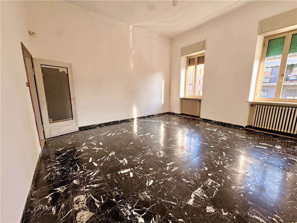 Gli ambienti interni si distinguono per luminosità e metrature generose. La zona giorno comprende una cucina abitabile e una sala da pranzo separata, mentre la zona notte offre due camere matrimoniali spaziose e una camera singola ampia con balconcino. Il bagno è finestrato e ben arieggiato.