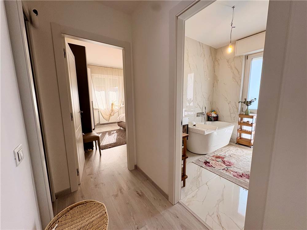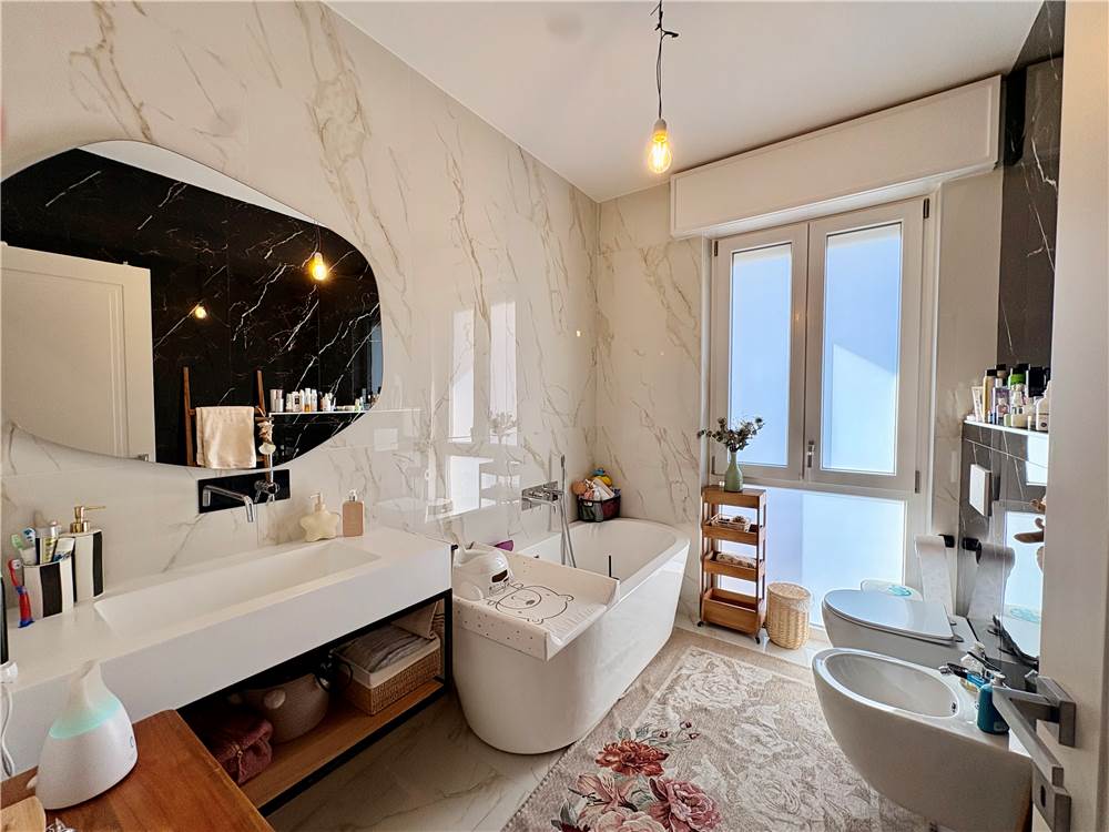 Situato al primo piano, l’immobile è stato completamente ristrutturato nel 2024 e si presenta in condizioni impeccabili, con ambienti moderni, curati e pronti da vivere. La generosa metratura si percepisce fin da subito: gli spazi sono ampi, ariosi e particolarmente luminosi, valorizzati da un’ottima esposizione e da finiture di alto livello che conferiscono eleganza e calore ad ogni ambiente.